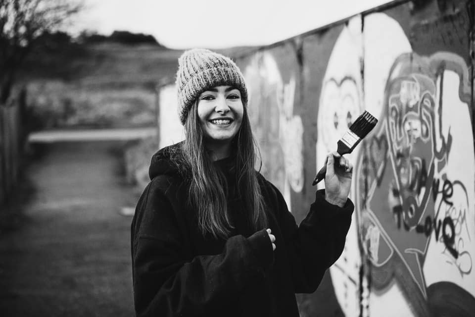 Standing outside with her biggest commissioned piece to date – @ibenmcmillanart